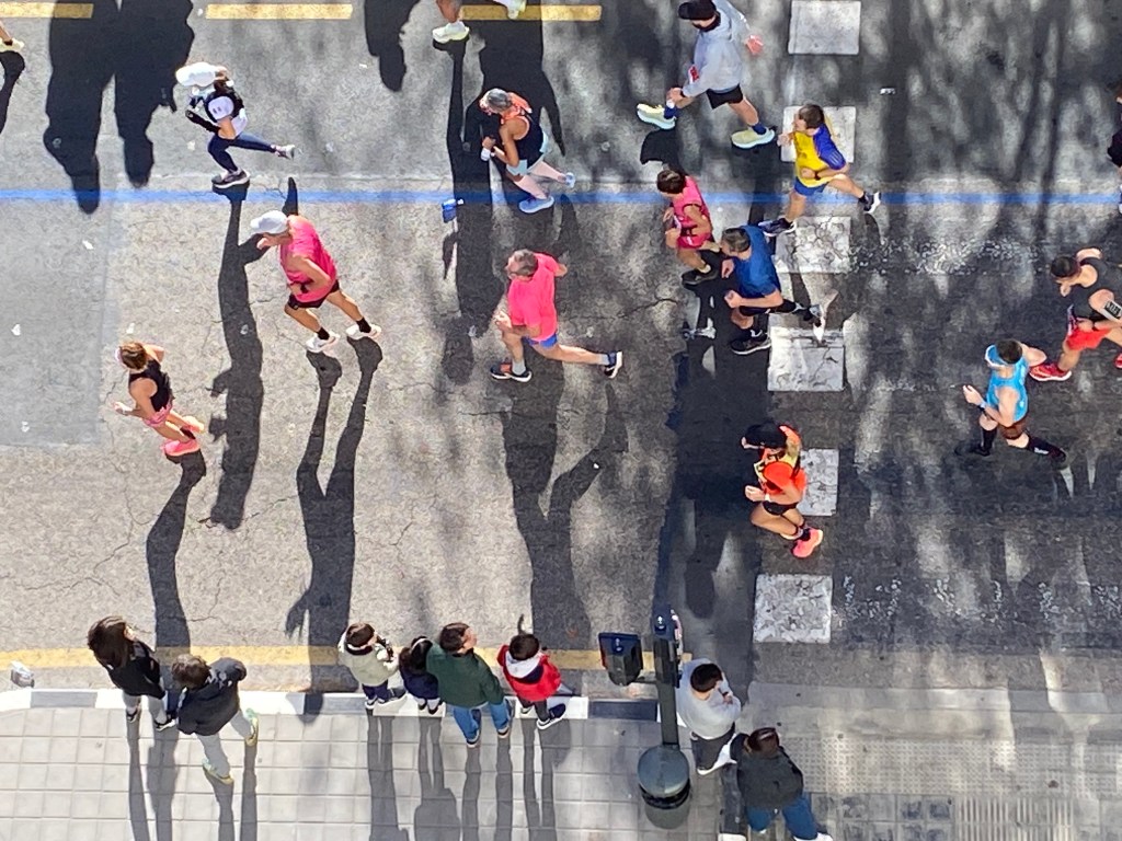 Es ist Marathon-Sonntag. Einmal im Jahr wird die ganze Stadt abgesperrt, damit Menschen aus aller Welt unter meinem Fenster vorbeirennen können. Dreiunddreißigtausend Leute sollen da mitlaufen. 33.000! Das sind ganz schön viele. Und alle bekommen im Ziel eine Decke, eine Medaille und eine Portion Paella. Ganz vorne aber laufen – natürlich – die Stars.