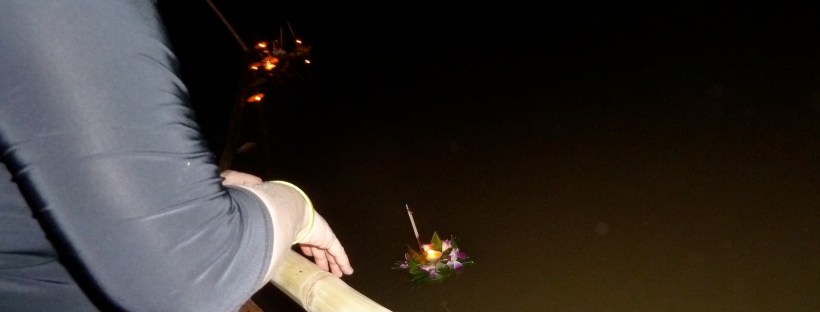 In der Vorstellung der Thai nutzen nämlich Probleme den Moment, in dem man am Flussufer steht und die Kerze und die Räucherstäbchen anzündet, zur Inspektion. „Warum“, fragt sich dann so ein Problem, „sollte ich weiter in diesem düsteren Kopf bleiben wollen, wenn ich auf Blumen gebettet in diesem hübsch erleuchteten Körbchen wohnen könnte?“ Also springt es auf – zum Probewohnen so zu sagen – und merkt zu spät, dass sich sein neues Zuhause bereits auf der Flussmitte befindet und mit anderen Problem-Haus-Booten auf nimmer wiedersehen verschwindet.